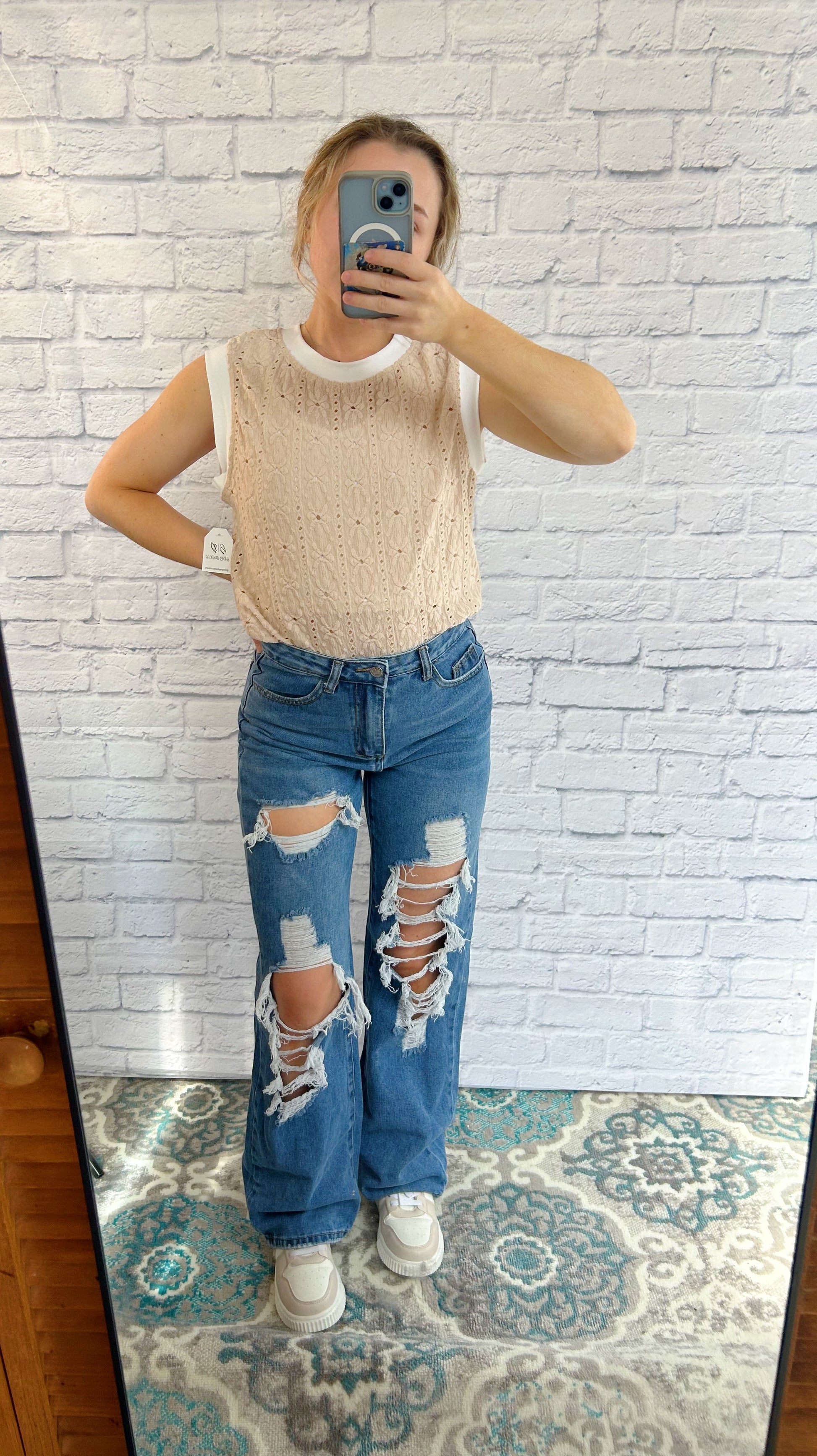 The Daisy Tank is a must-have for any spring and summer wardrobe. The floral textured design provides a unique touch, while the oatmeal color complements any outfit. Made from lightweight material, this tank offers comfort and style for the warmer seasons.